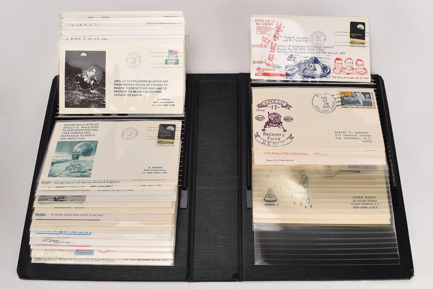Before email was ... mail ... and it recorded important events better than any other medium. This fantastic collection of 263 First Day Covers and commemorative covers with cachets honoring the Mercury, Gemini, and Apollo programs, pioneers in rocket science and space exploration, and a vast array of historic NASA launches, rockets, missiles, probes, and satellites. All of the covers are unsigned, with many postmarked between 1959 and 1974 at locations like Cape Canaveral or aboard various recovery ships.