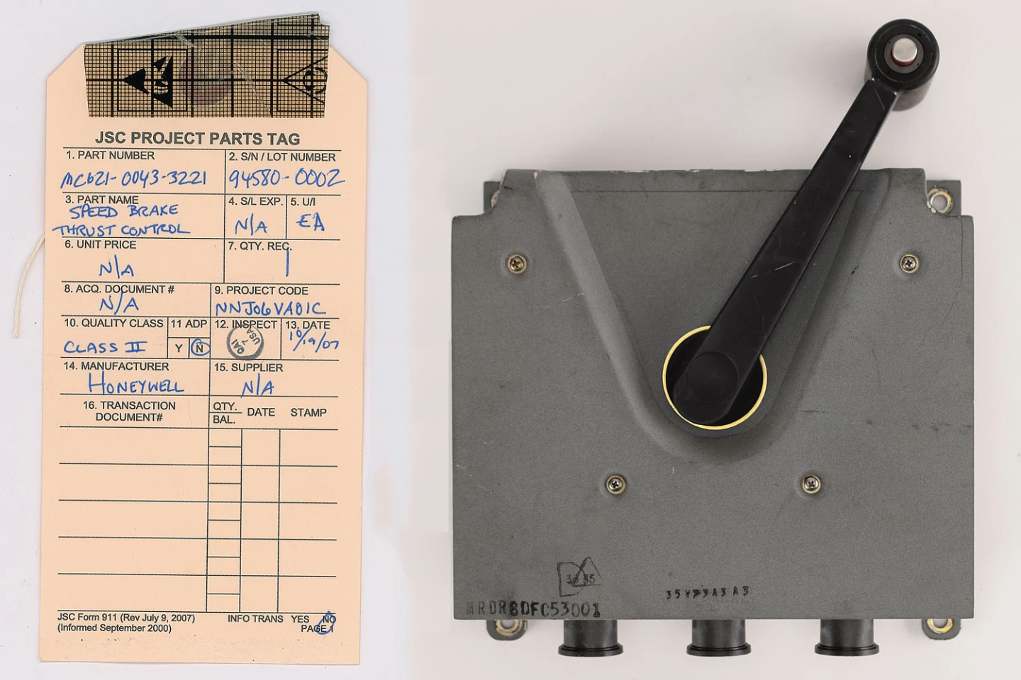 This Speed Brake/Thrust Control unit was manufactured by Honeywell for use in the Space Shuttle program, most likely for the Enterprise, based on the date of manufacture – November, 1975. Bearing in mind that space exploration is still in its infancy, this inexpensive artefact might well be worth a lot of money a few generations from now, making it a long-term family heirloom.