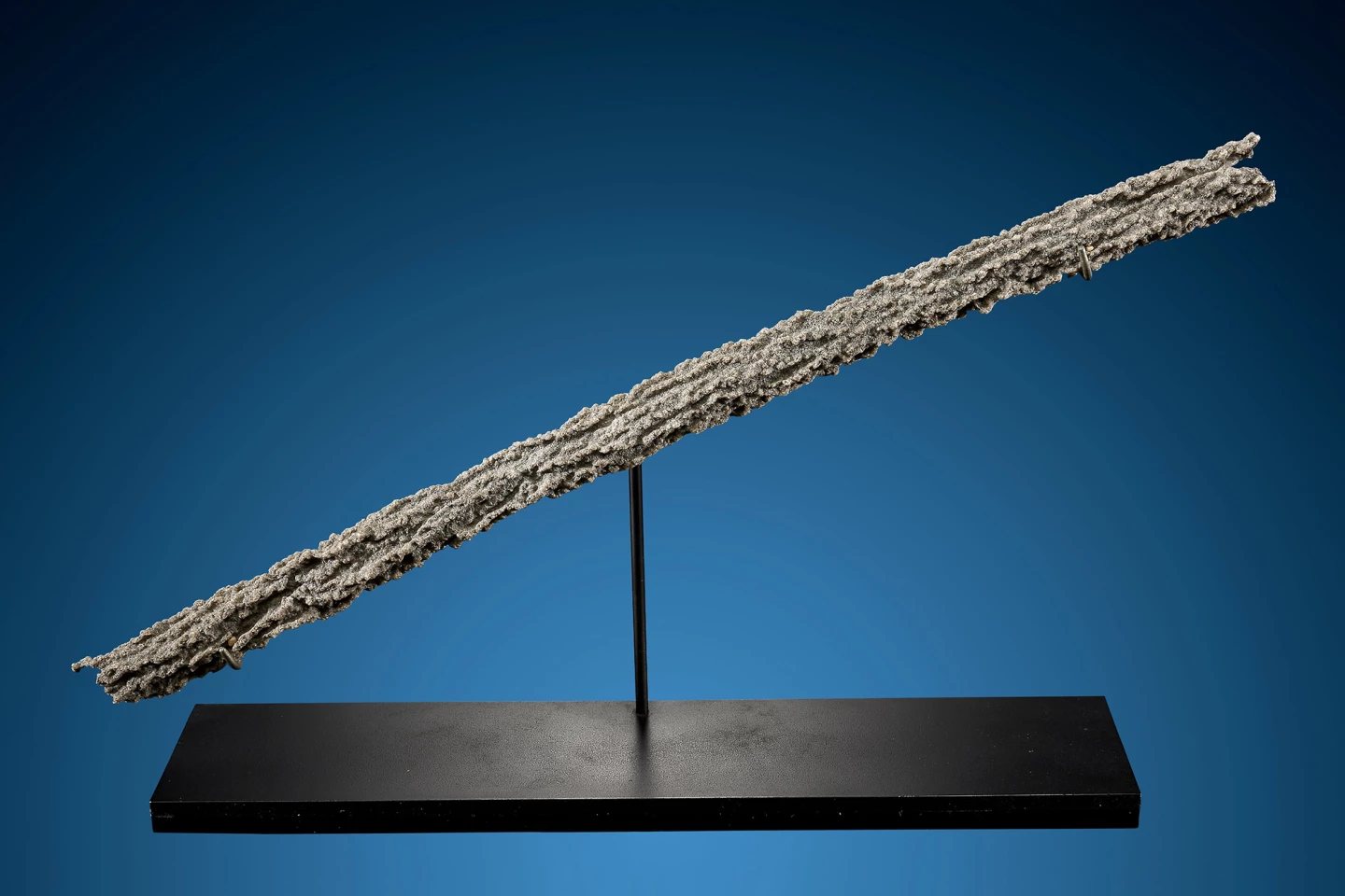 This meteorite originates from the largest recorded meteorite fall in history, on February 12, 1947, over the Sikhote-Alin Mountains in Siberia, Russia. The Sikhote-Alin iron meteorite features a remnant black fusion crust caused by extreme heat during meteorite's flight, as well as abundant and delicate flowlines caused when part of the meteorite's surface became molten. Meteorites offer a fine investment as demand will continue to rise much faster than supply does.