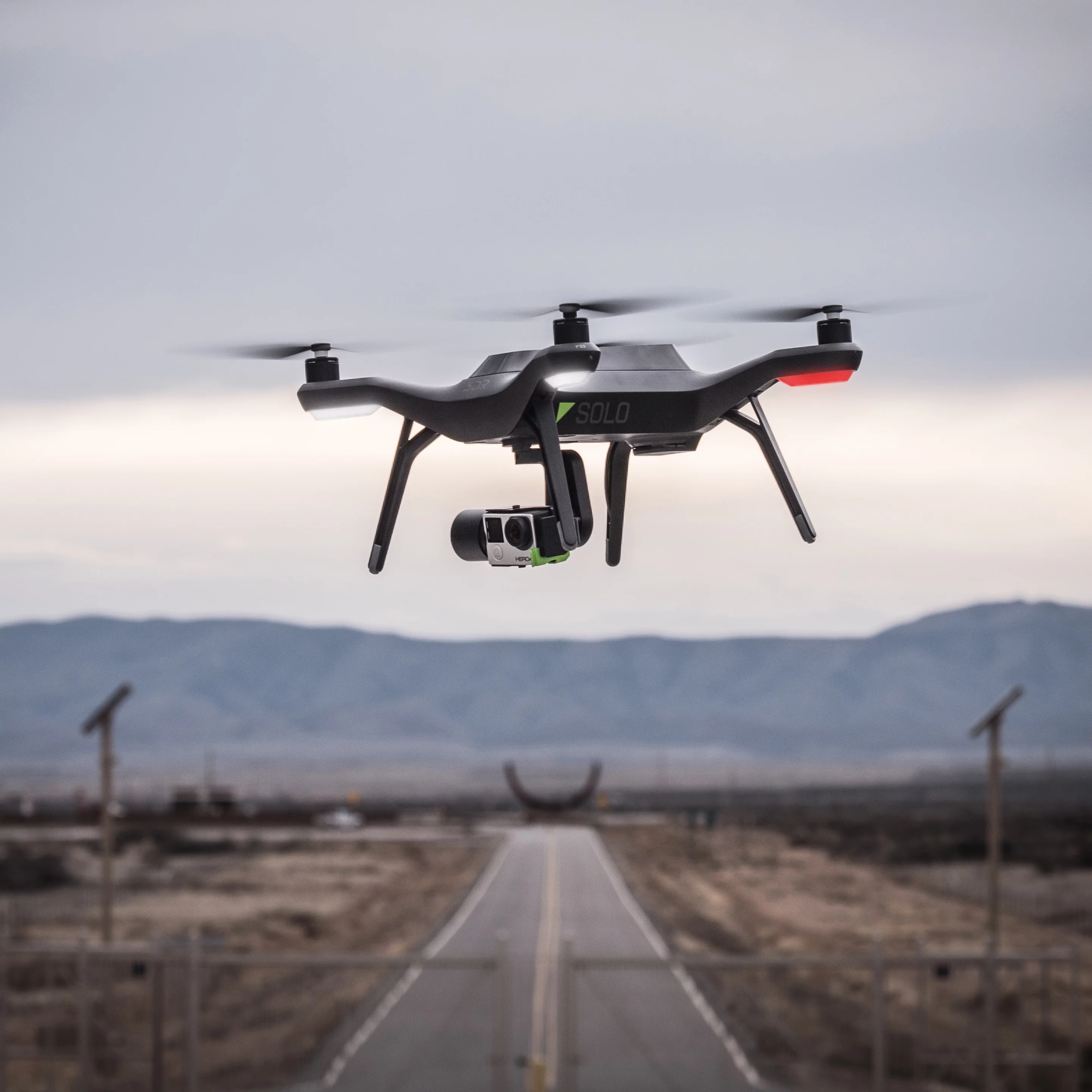 The "smart battery" 3DR has developed to go with the Solo can be used to charge the GoPro camera via the gimbal to ensure you don't miss that all important shot when the camera's battery is running low. The drone monitors battery life and distance back to the controller, so the Solo will start back home while it still has enough power to make it safely back to where it started.