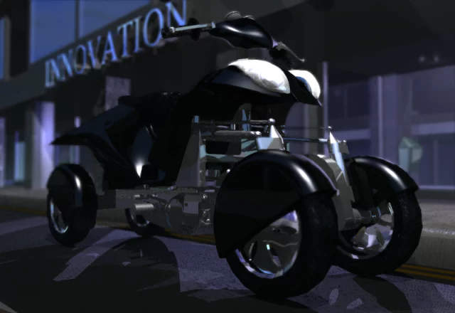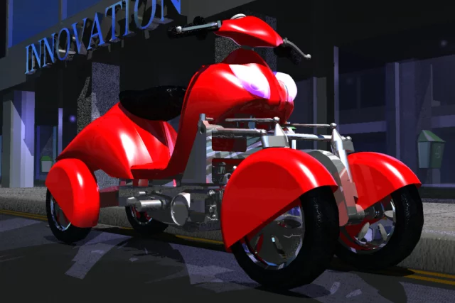 While Piaggio's MP3 has now started to get us used to the idea of a leaning trike, Shotter's concept holds several key advantages thanks to the unique suspension design that's the subject of his patents.