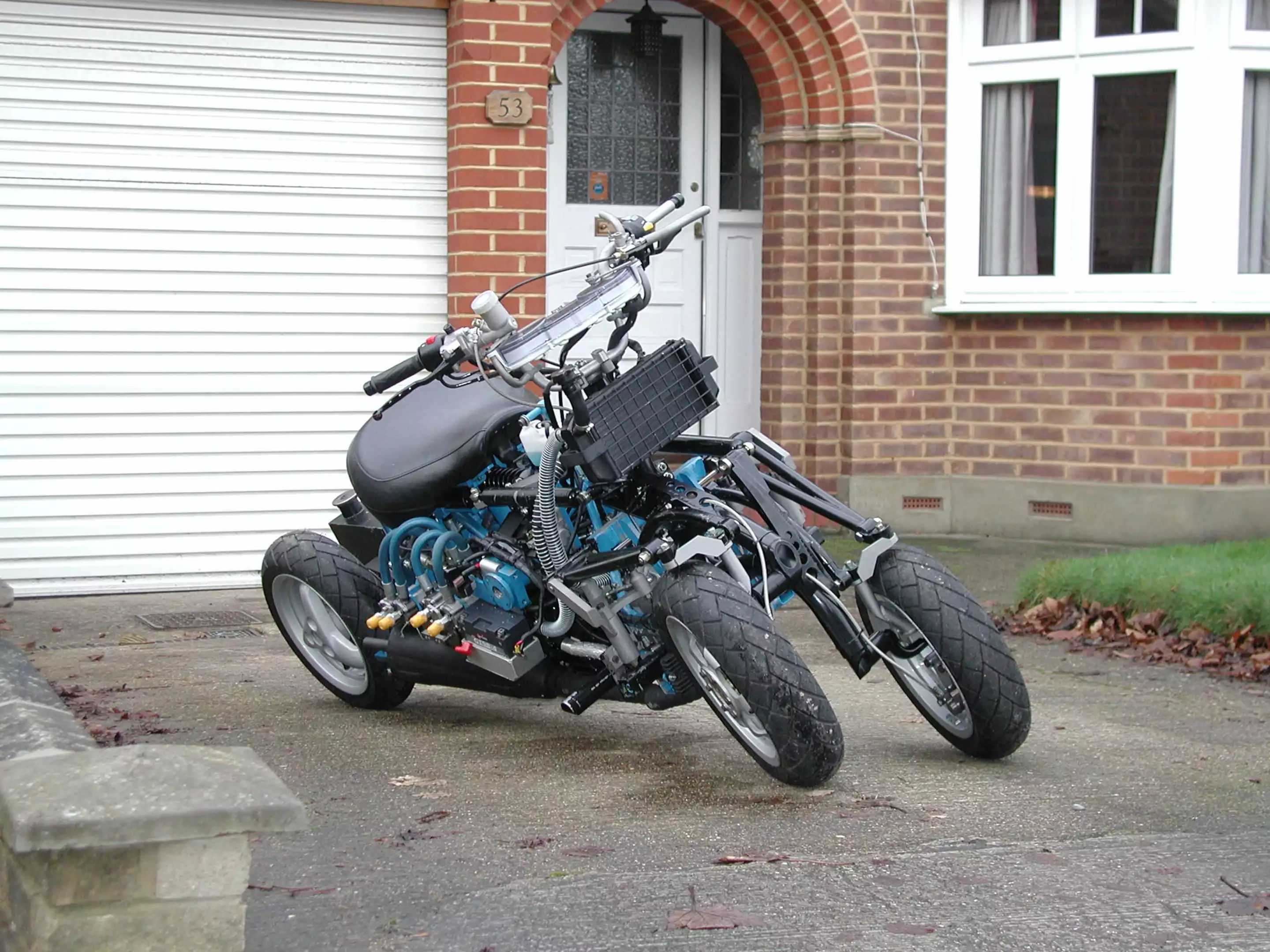 “It started as a hobby, really,” he said, “My first thoughts were about how to get more rubber on the road, and I quickly realised the whole thing had to lean, so the answer was to have four thin wheels.