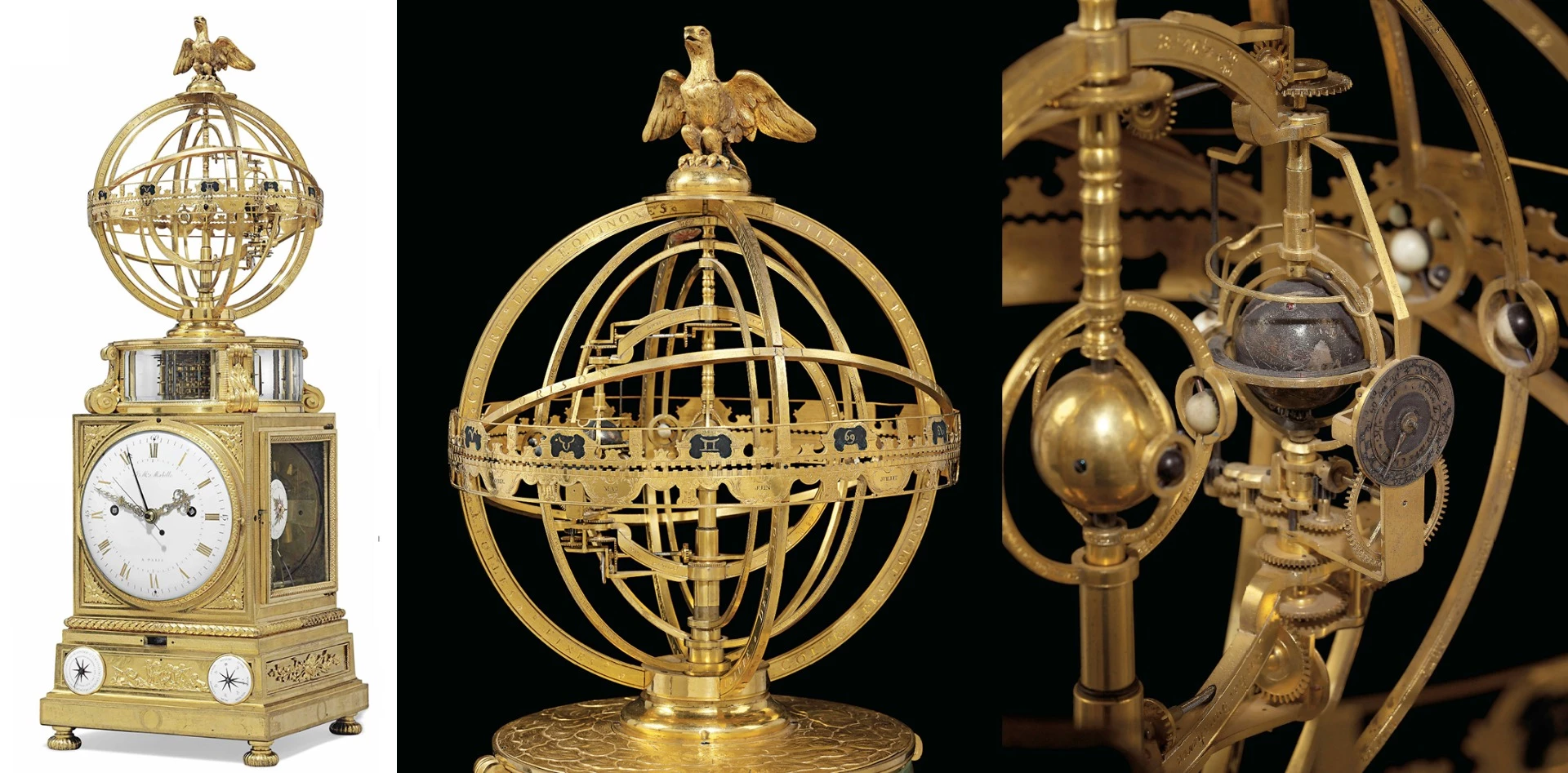 Another that spanned the gap between art and scientific instrument was this Louis XVI Ormolu Striking Table Clock, which has a calendar, moonphase, equation of time and terrestrial "sphere mouvante". It was created in Paris circa 1775 and sold at a Christies (London) auction in 2015 for $926,440 (£602,500).