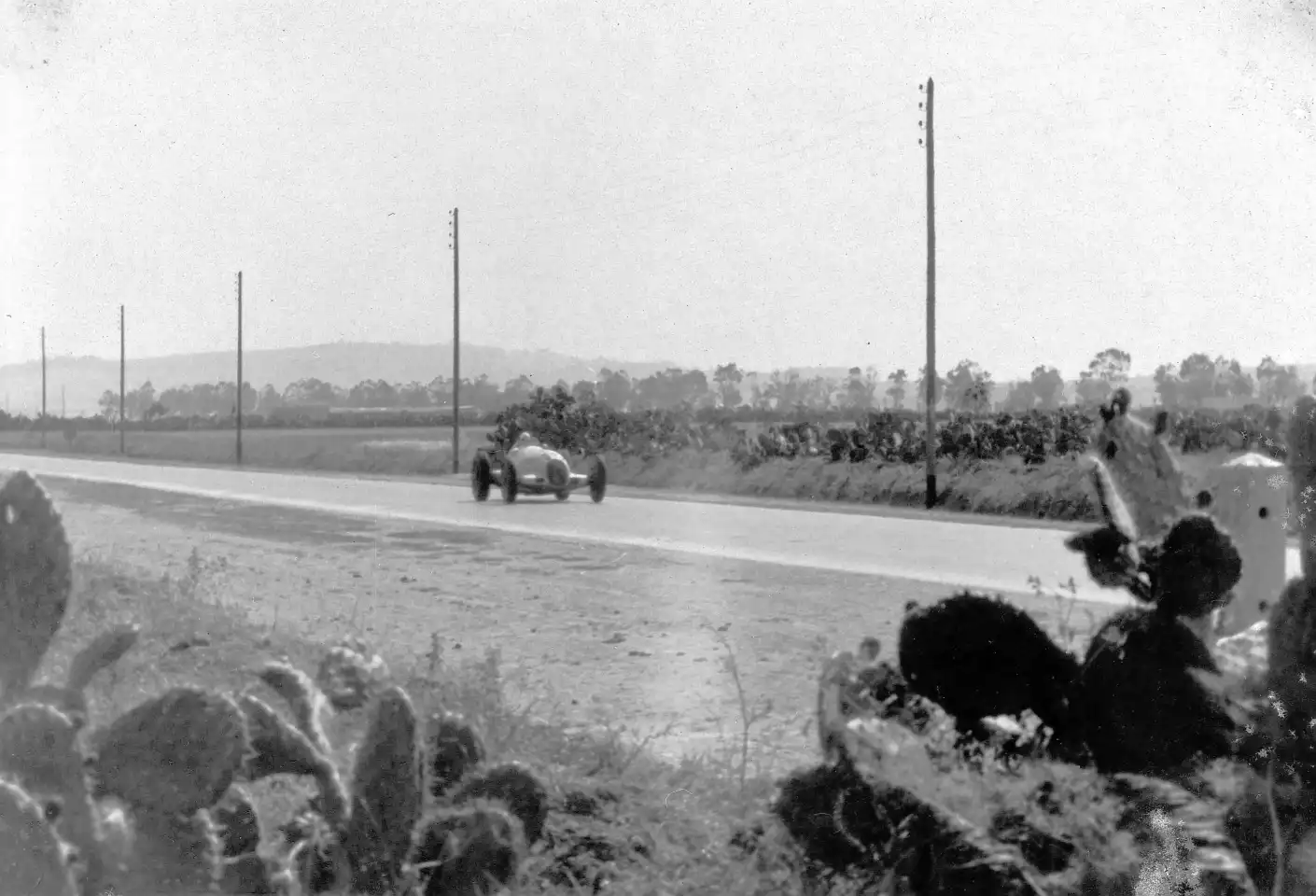 Although the circuit is now under Mitiga international airport in downtown Tripoli, in 1933 it was countryside and most of the long 13.14 km (8.165 miles) circuit was comprised of country roads in a roughly oval shape. The surface was good, with white lines on either side of the track signifying the racing surface - it was what was just beyond the white lines that presented the dangers.