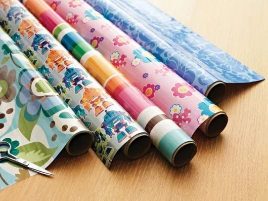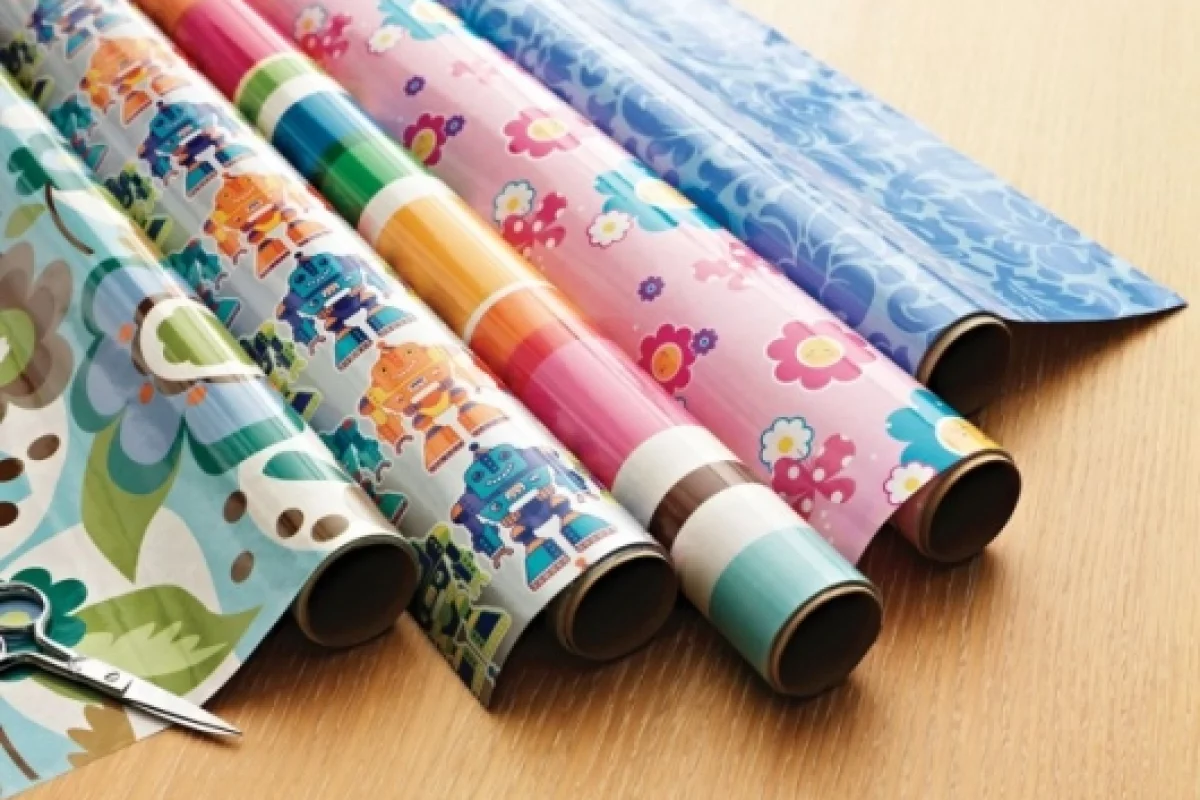 Hallmark, the company credited with founding the modern-day gift wrap industry, has a provisional patent on the product’s low-tack adhesion, which is sticky enough to create clean lines and crisp folds without leaving any residue on the gift. There is no backing to peel off, so Adhesive Gift Wrap sticks to itself when rolled up, making storage simple.
