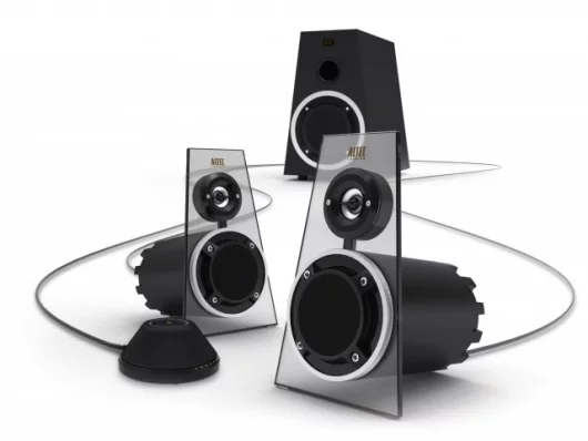 No need to hide these speakers, either. They’re stylish enough to be displayed on any desktop. The visible drivers on the satellites are set into a translucent bezel and the subwoofer features a distinctive trapezoidal design that breaks up standing waves and delivers the deep bass.