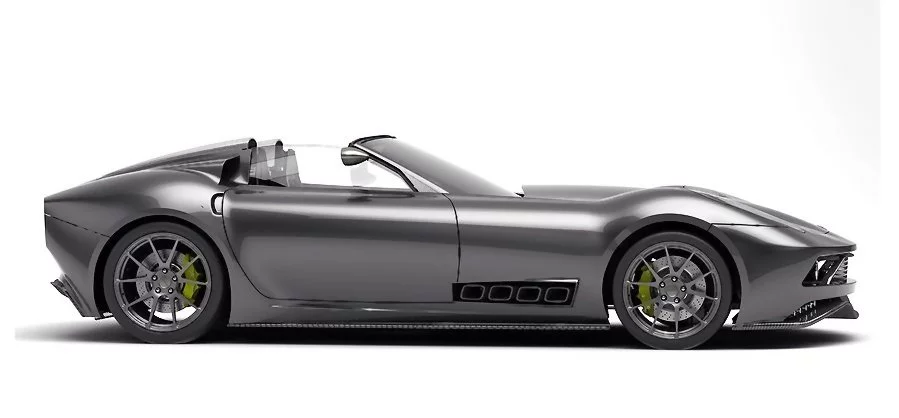 The body rests atop a tubular chromoly steel chassis, on which are mounted a number of performance parts, including a front/mid-mounted 4.7 liter GM LS7 V8 engine, which may be coupled to the rear axle through a Mercedes seven-speed paddleshift transmission.