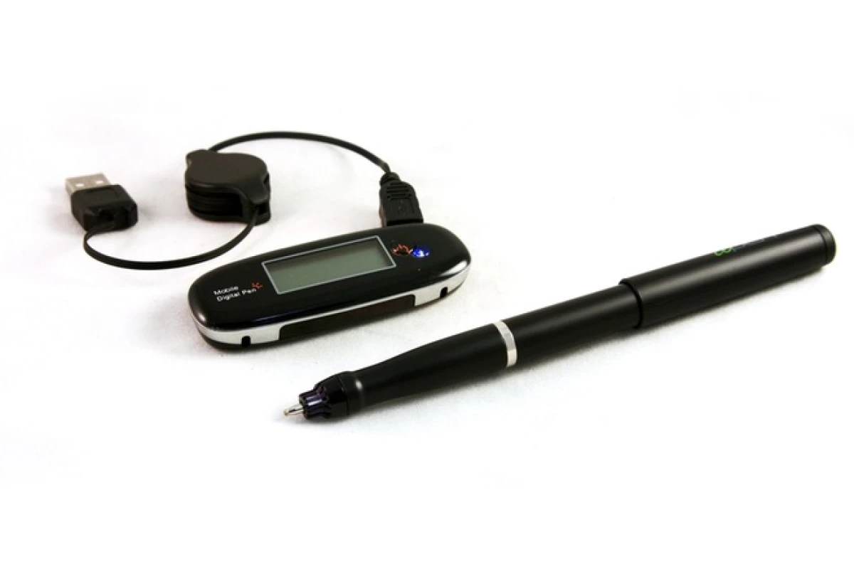 Users place the APEN's receiver at the top of a sheet of paper, then proceed to write or draw in ink on that same sheet, with the pen itself. The receiver keeps track of the pen's position, and that information is translated into a digital image of what's on the page. Data is either transmitted live by Bluetooth to a Blackberry or Android smartphone (or iPhone or iPad, with the A4) or transferred later to a computer, via a USB cable - up to 100 pages can be stored by the receiver. This means that the system could be used somewhere such as a classroom, with no computer or smartphone present.