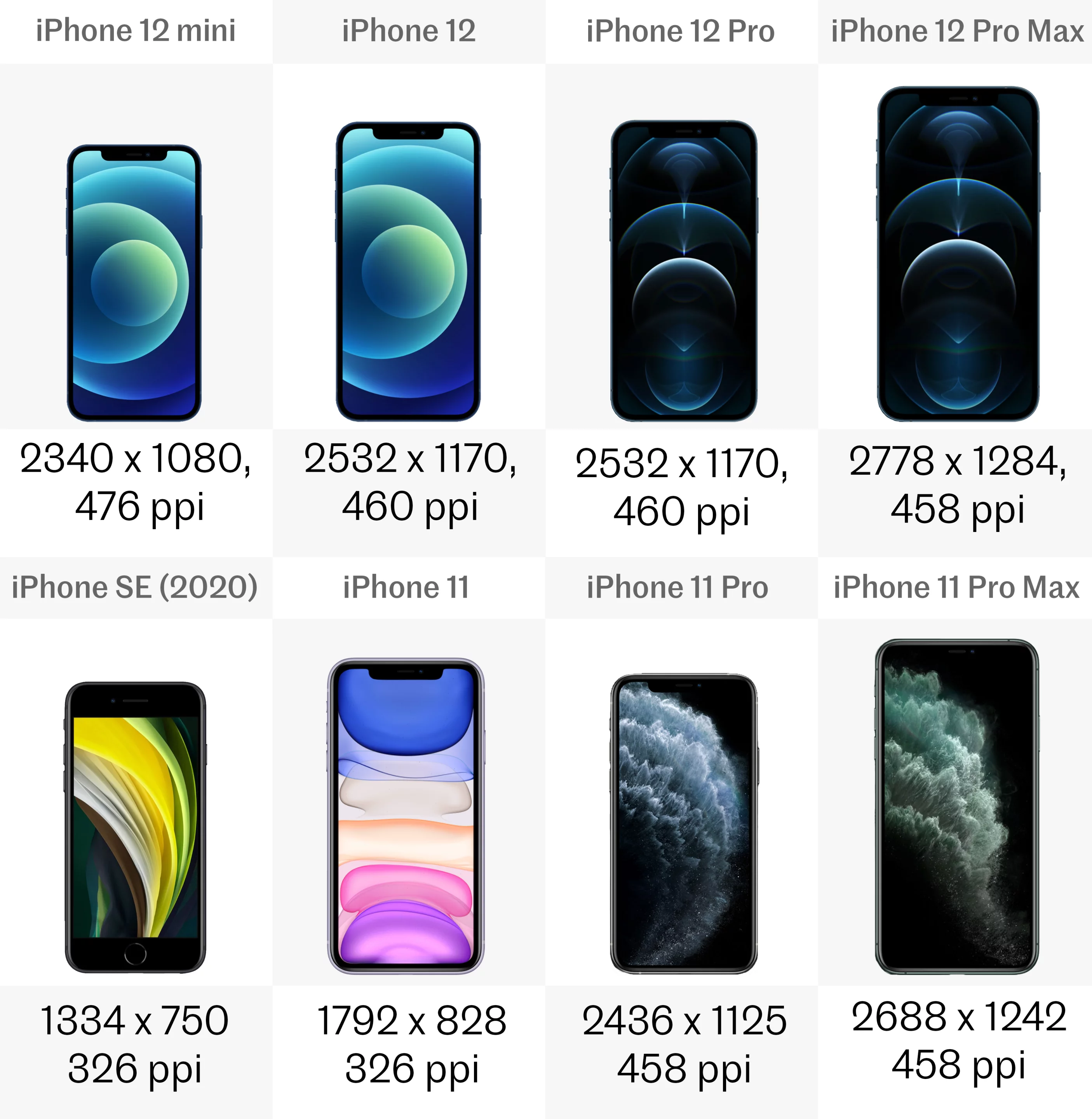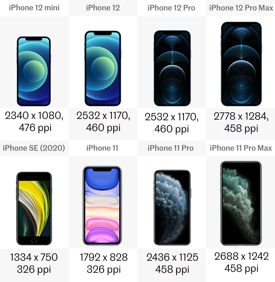 The iPhone 12 lineup generally has a higher resolution than their predecessors. In fact, the iPhone SE and 11 are among the last phones to have screens that don’t even reach Full HD resolution – a standard that most other companies reached years ago. The 11 Pro and Pro Max are much better equipped, with displays that are roughly 2K.