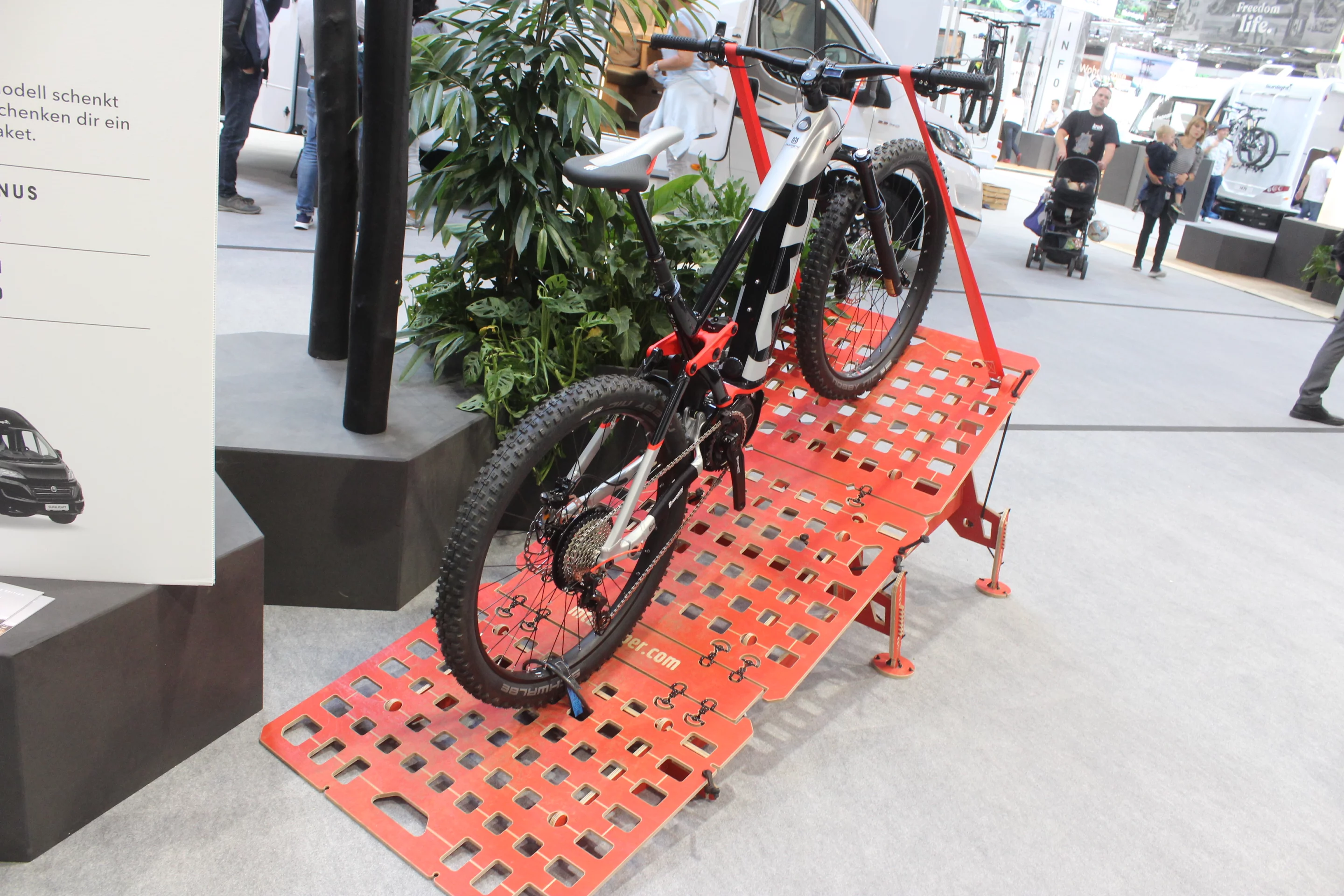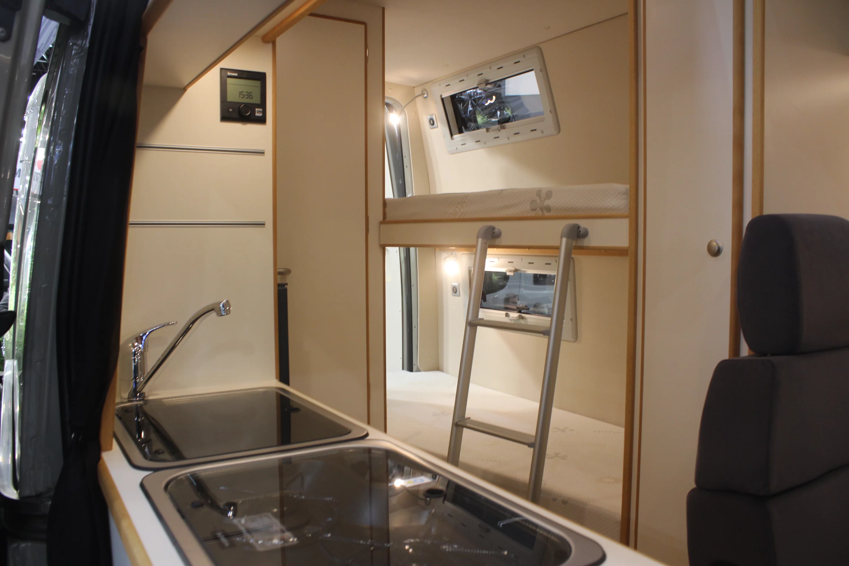 Whatever your two/four-wheel travel dreams, there are a few moto transporter vans perfectly equipped to make them reality, and the new Weinsberg 630 MEG [Outlaw] was the best van in Düsseldorf for the task. A full bike garage awaits inside the rear loading doors, and Weinsberg offers a foldable ramp and dirt bike carrier to simplify loading the bikes. It properly seals the garage off from the fully equipped camper interior, which has sleeping space for up to three people, a kitchen block and a wet bathroom. Bike hard all day, lock the bikes away at night and retire to the comfort of a warm camper van with roomy queen bed.