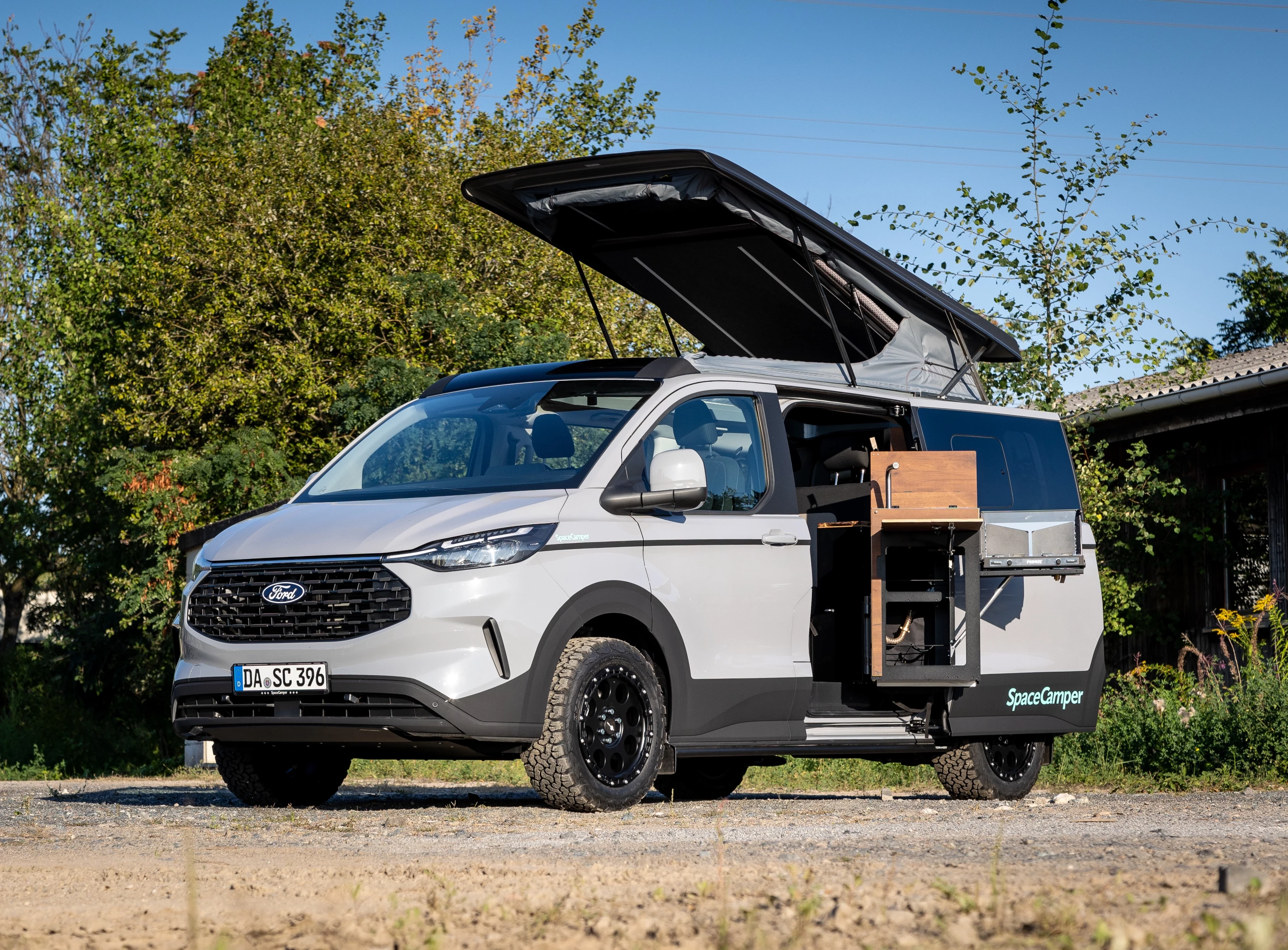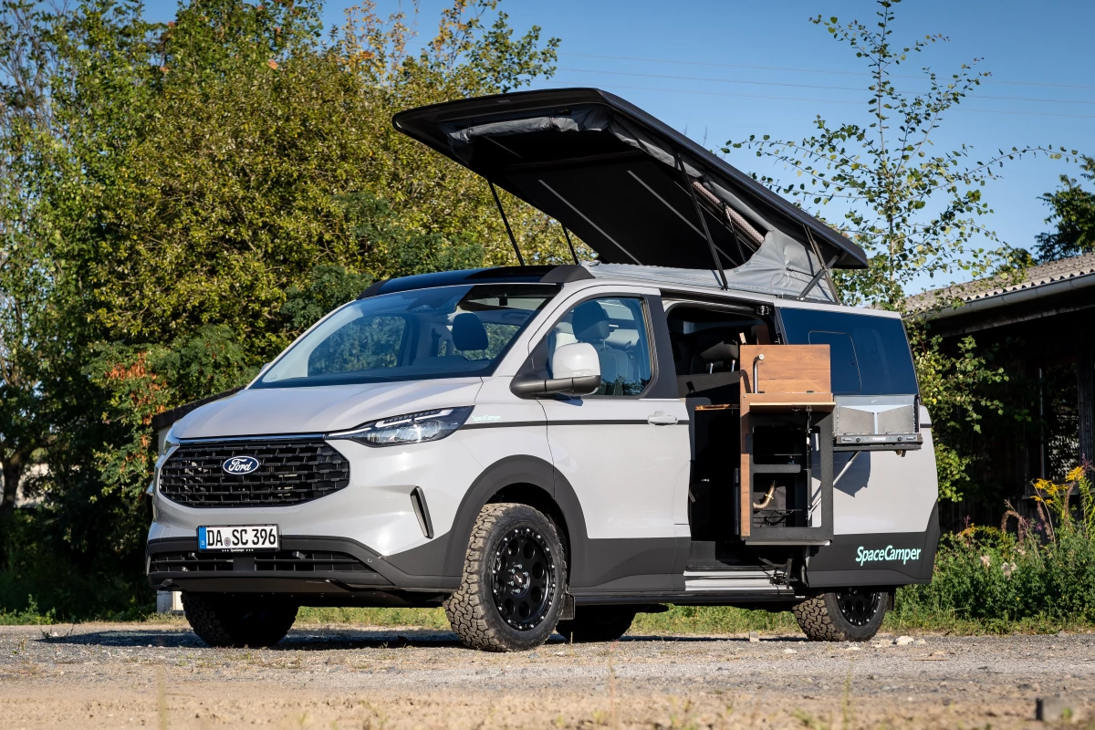With the new Classic+ Ford, Spacecamper follows Volkswagen in taking the fork in the road. It continues its rich history of Volkswagen conversion with its Multivan package while also pursuing a camper van based on the Ford Tourneo Custom, the passenger van variant of the same midsize Transit Custom that underpins the popular Ford Nugget. And we'll be surprised if Spacecamper doesn't also build a camper van or two on the all-new VW Transporter, which shares its platform with the Transit Custom and has already led to one dual-badged camper van family from another German converter.