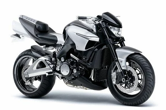 Styled in the likeness of a Pit Bull, it has a supercharged version of the most powerful motor in mainstream motorcycling, the frame, brakes and suspension of a MotoGP racer, plus the most sophisticated digital electronics and communications package yet assembled for a bike - it is the Suzuki B-King concept bike. Another first with the B-King is that it will be the first motorcycle to come with its own helmet - the B-King is the first motorcycle to be designed for use with a heads-up display, so the rider does not need to unfocus from the road to read the the speedo, tacho or navigation instructions from the GPS system. In keeping with its macho image, Suzuki has banished the use of plastic in the construction of the machine - it is made entirely of carbon fibre, metal and leather. Unofficially, the bike is producing 250 horsepower, and hence it's not surprising it wears a very wide set of road