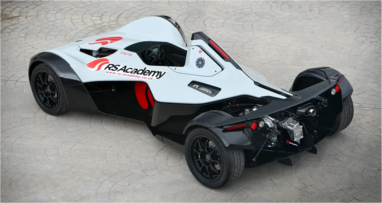 Constructed using carbon fiber composite around a steel safety shell, the BAC Mono weighs in at 540 kg (1,190 lb). It is powered by a longitudinally mounted 2.3 liter, four-cylinder Cosworth engine delivering 280 bhp that is coupled to a Hewland F-3 spec 6-speed sequential gearbox.