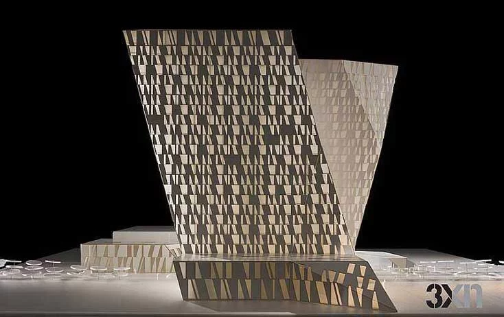 "The challenge was to build two towers with a single origin, so a common foyer was possible," said Kim Herforth Nielsen, founder of 3XN and Creative Director. "Designing a sustainable building was also vital to us. This includes insulating the building from solar heat and heat loss, which meant that the facade could not be comprised of more than 50% glass. The facade's pattern provides this insulating effect. And the pattern, which is formed by diagonal and vertical lines, enhances the building's look by following the turning of the towers."