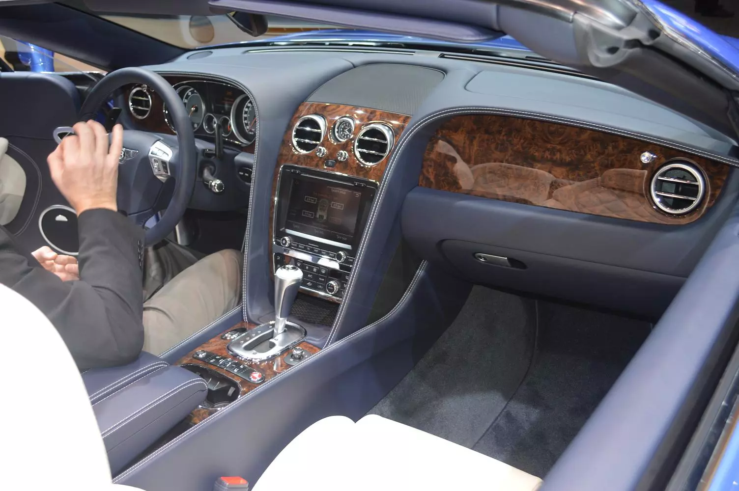 From the outside, the Continental GT Speed Convertible is definitely a Bentley with its subdued lines and the boxy profile of its exceptionally rigid body shell. It tries to be a bit more sporty than its fellow Bentleys with its 21-inch alloy wheels, dark-tint matrix grilles, “rifled” elliptical exhaust tailpipes, and front wings in superformed aluminum, but you get the feeling that it’s fighting with itself about what sort of car it wants to be. Is it “creating an impression of tension and muscularity” as Bentley claims, or is it still the car your bank manager drives?