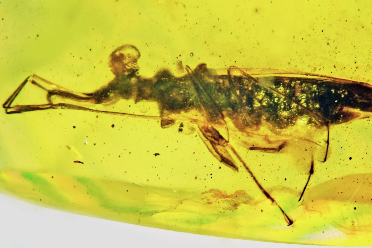 Measuring just over 5 mm long, the insect was found in Burma, encased in 100-million-year-old amber (fossilized tree resin). Oregon State University's Prof. George Poinar Jr., leader of a study on the find, has named it Palaeotanyrhina exophthalma. The first part of that monicker refers to the Palaeotanyrhinidae family, which Poinar created after determining that the insect didn't fit into any existing families.
