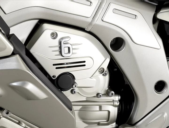 The engine size is a result of using a 72 mm cylinder bore with just 5 mm between the cylinder the cylinder sleeves, a design that squeezes the 6 cylinders into a 555 mm wide block. Peak power of 118 kW (160 bhp) is achieved at 7,750 rpm and maximum torque 175 Nm at 5,250 rpm, but being a six, over 70 per cent of the maximum torque is already available from 1,500 rpm... which suggests some very comfy touring is in order when you throw a leg over one of these.