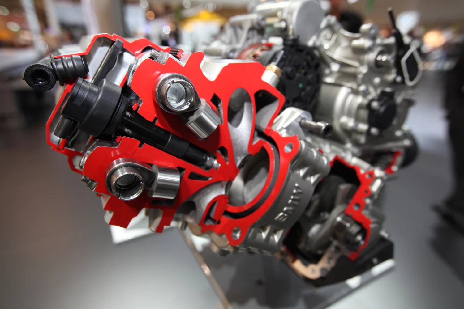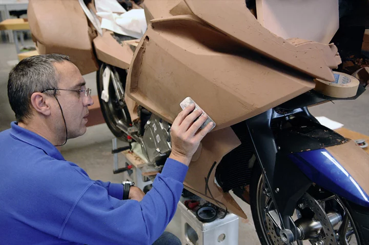 As per the 4-cylinder in-line K 1300 series, the cylinder axis is tilted forwards by 55 degrees to achieve a low center of gravity and balanced weight distribution, as well as allow for better cooling intake directly above the engine.engine position