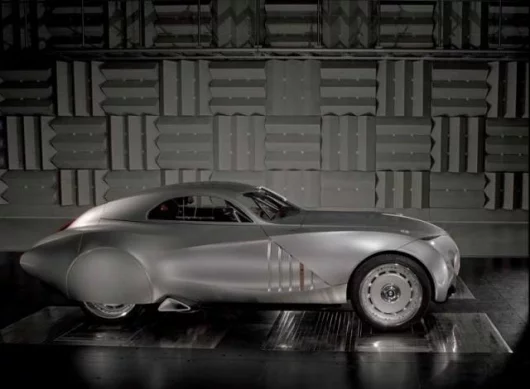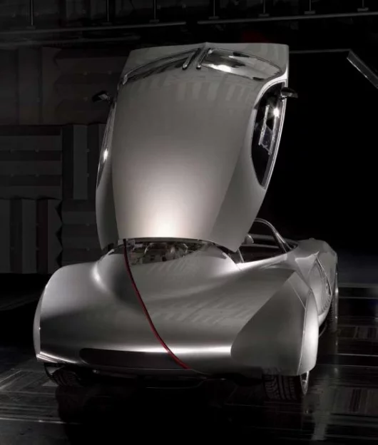 The entire body of the concept vehicle is made out of a carbon-fibre reinforced plastic (CFRP). The shell is painted fine silver, a full-gloss paint colour with extremely fine pigments. In this way, the finish awakens the memory of traditional colourings, but when inspected more closely it is clearly the result of the most modern surface-aesthetics engineering.
