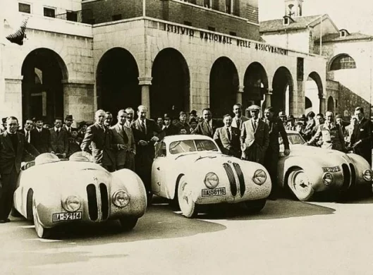 The BMW 328 Coupé’s success during the 1940 Mille Miglia used the most progressive automobile engineering methods of the time. The two-seater was given a lightweight chassis manufactured in the Milanese bodywork forgery Touring on a lattice frame. The power delivered by its 2.0-litre six-cylinder in-line engine was increased from the original 80 PS to 136 PS and combined with light weight and optimal aerodynamics to enable an average speed of 166.7 km/h.