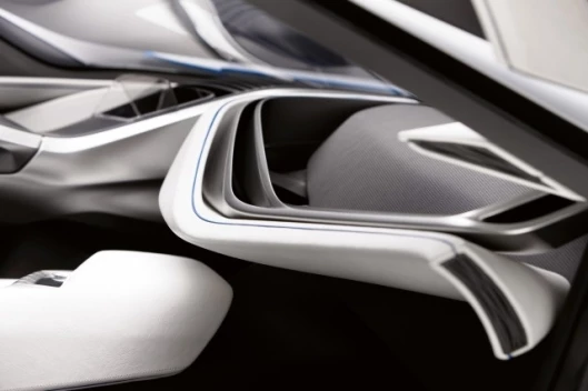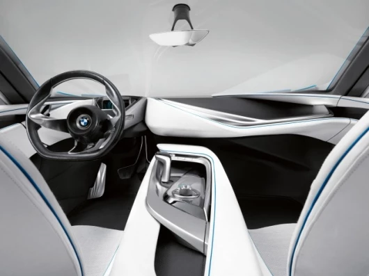 As a result, BMW Vision Efficient Dynamics meets the most demanding aerodynamic requirements without using any additional body elements, simply through the structure of the surfaces optimised for a smooth flow of air. Interior: innovative lightweight construction and unprecedented orientation to the driver In the design of the interior, innovative layering technology provides an unprecedented symbiosis of function and stylish shapes intentionally reduced to a minimum, consistently implementing and visualising the lightweight principle also inside the car.
