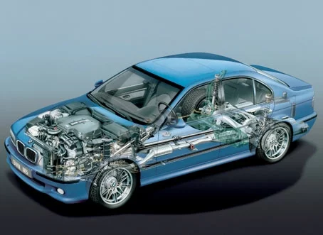 The BMW M V10 is the only high-revving power unit to be featured in a series-production car. The M5's V10 boasts a cubic capacity of 5.0-litres and produces a maximum output of 507 BHP (378 kW) and a maximum torque of 520 Newton metres, making the M5 the most powerful production model in the BMW line-up.