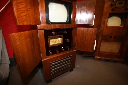 Two massive exhibition rooms at Bonhams hold all this paraphernalia, but the greatest monetary value in the collection fills another even bigger room downstairs where Bennett-Levy’s unequaled collection of 26 pre-war televisions exists, including two low definition 30 line sets, is housed. This is the most comprehensive private collection in the world and, of the estimated 500 sets still surviving, represents just over five precent - a considerable proportion. It is the third or possibly the fourth, largest single collection of unduplicated models from this early period - the larger collections are all in museums or foundations.