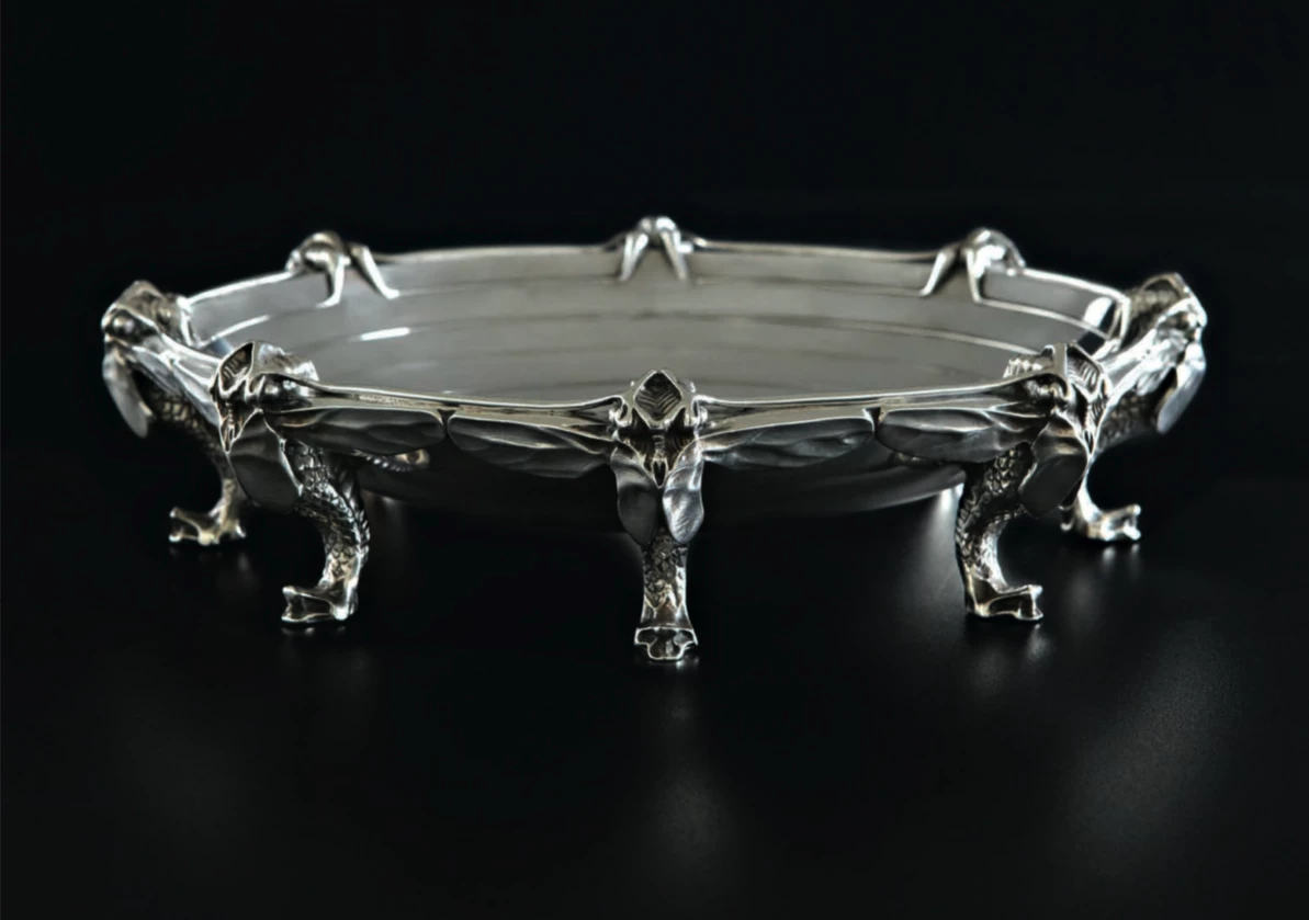 This very rare “Dragonfly” footed bowl, circa 1907 was one of the many important works included in the Phillips de Pury auction. It is the work of Carlo Bugatti, father of Ettore Bugatti who established the Bugatti automotive marque and captured world speed records for cars, boats, trains AND aeroplanes.