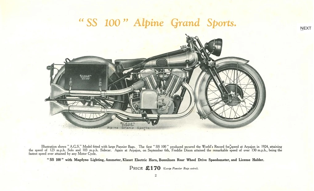 The prototype Brough Superior SS100 Alpine Grand Sport