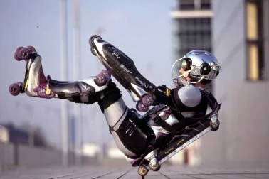Rollers attached to arms also opens up the possibility of using vertical surfaces, giving birth to moves like "Mad Buggy Dog", where three limbs roll along the wall while the other remains on the ground.