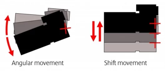 The Hybrid IS includes an acceleration sensor in addition to the conventional angular velocity sensor (vibration gyro). Based on the amount of camera shake detected by the two sensors, a newly developed algorithm calculates the amount of blur on the image plane, after which lens elements in the IS are positioned to compensate for the two types of shake.