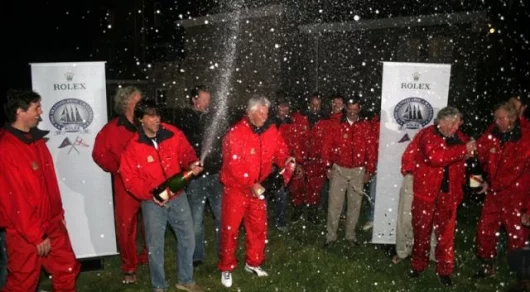 June 2, 2005 Having established a new transatlantic race record between New York and the Lizard, UK, yesterday morning, the afternoon saw Robert Miller’s Mari-Cha IV making an unexpected 20 knots up the English Channel towards the Needles and the finish line of the Rolex Transatlantic Challenge race. The wind, forecast to drop off, held, and shortly before dusk, in a seascape so misty and overcast that it merged grey sky with grey sea, the high-tech schooner charged past the Needles Fairway buoy to the west of the Isle of Wight to take line honours, as well, in the Rolex Transatlantic Challenge. Mari-Cha IV crossed the finish line at 19:18:37 UTC, setting a course time between Ambrose Light (in the U.S.) and the Needles of 10 days, 1 hour, 8 minutes and 37 seconds. This compares with Atlantic’s time of 13 days, 10 hours and 15 minutes in the 1905 race for the Kaiser’s Cup. Up the Channel, in hot pursuit of Mari-Cha IV, was Maximus, the new sloop of New Zealanders Charles Brown and Bill Buckley, who had passed the four-mile long gate off the Lizard at 19:18:37 UTC yesterday (1 June), making it to the Needles finish line at 00:35:08 UTC this morning (2 June), 5 hours 16 minutes and 31 seconds behind Mari-Cha IV. While this was disappointing for the crew, the consolation prize was a handicap win in the Grand-Prix division.