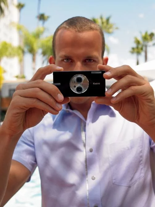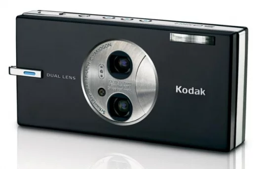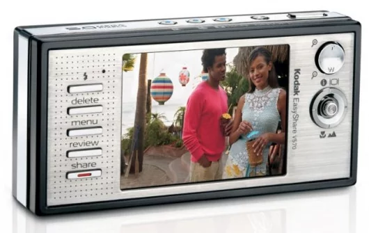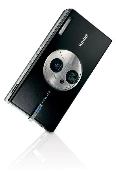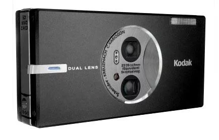 January 4, 2005 Kicking off this week's 2006 International Consumer Electronics Show (CES), Eastman Kodak Company has introduced the world's first dual-lens digital still camera, the KODAK EasyShare V570 zoom digital camera. Using proprietary Kodak Retina Dual Lens technology, the elegant V570 camera wraps an ultra-wide angle lens (23 mm) and an optical zoom lens (39 - 117 mm) into a package less than an inch thick. The innovative EasyShare V570 camera's ultra-wide angle lens coupled with its optical zoom lens produces a total 5X optical zoom range, providing more options to help today's picture takers capture the perfect shot --group photos, scenic landscapes, dramatic portraits, and close-ups. No other consumer digital camera offers such a wide angle of view, nor the unique, sophisticated design of this model, whose all-glass, stacked Schneider-Kreuznach C-Variogon prism lenses never extend from the camera body.