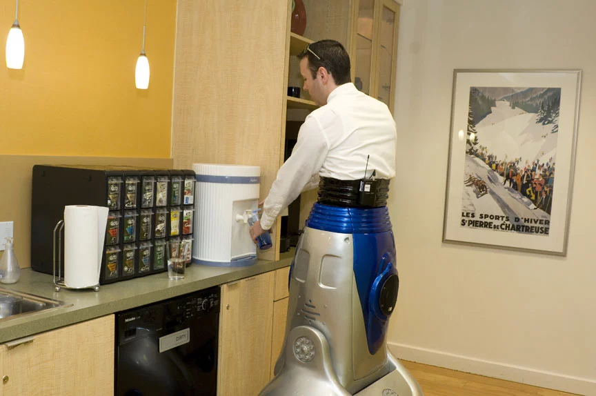 Looking a little like a wearable Segway, the self-balancing, hands free Chariot is a sensor-activated pod controlled by subtle movements of the lower torso and hips. Sensors inside the cocoon-like shell of the vehicle predict the intended motion of the wearer and carry them in that direction. The battery powered vehicle can travel up to 12 miles per hour and Exmovere says the Chariot requires no manual dexterity, minimal physical effort and allows wearers to closely approach and reach objects that would otherwise be difficult to reach for those in wheelchairs as well as allowing its wearer to make direct eye contact with others.