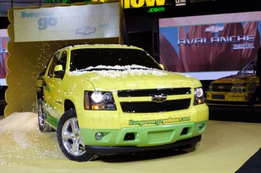 February 12, 2006 General Motors introduced the latest rollout of its next-generation full-size truck family, the 2007 Chevrolet Avalanche, at the Chicago Auto Show. The Avalanche combines the passenger-comfort of an SUV with the cargo capability of a truck and the new 2007 model offers more power, better fuel economy and optional E85 flex-fuel capability. E85 FlexFuel vehicles can run on any combination of gasoline and/or E85, a fuel blend of 85 percent ethanol and 15 percent gasoline. E85 can contribute to energy independence because it diversifies the source of transportation fuels beyond petroleum, and it provides positive environmental benefits in the form of reduced greenhouse gas emissions.