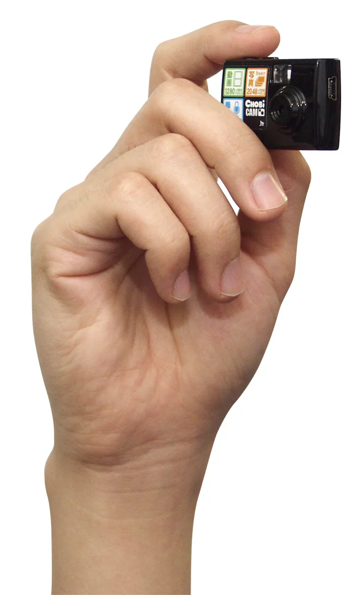 Not unlike the Mini-digi which we covered a few weeks back, the Chobi Cam from Japan Trust Technologies gives you the power to shoot photos and videos using a device no bigger than an eraser. Even smaller than the Mini-Digi (2.5 x 1.8 x 1.2 inches), the Chobi Cam measures a miniscule 1.7 x 1.1 x 0.5 inches and weighs only half an ounce.
