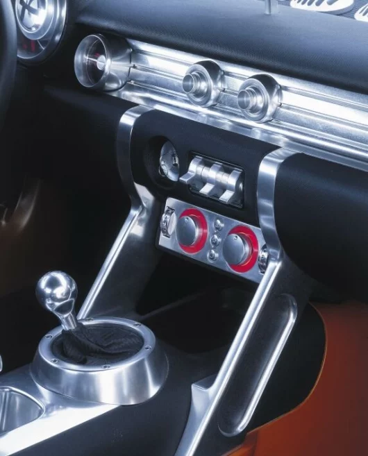 The Dodge Razor's instrument cluster has an integrated tachometer/speedometer with analog reading of the revs and a digital read-out of the speed. This compact unit is flanked by easy-to-read gauges for temperature/oil pressure and fuel/battery. The interior is finished in body color and extruded aluminum. "We feel passionate about keeping it simple and honest," said Sodano. "Razor has a focused driver's interior, enhancing the experience of raw power as only a sports car can."