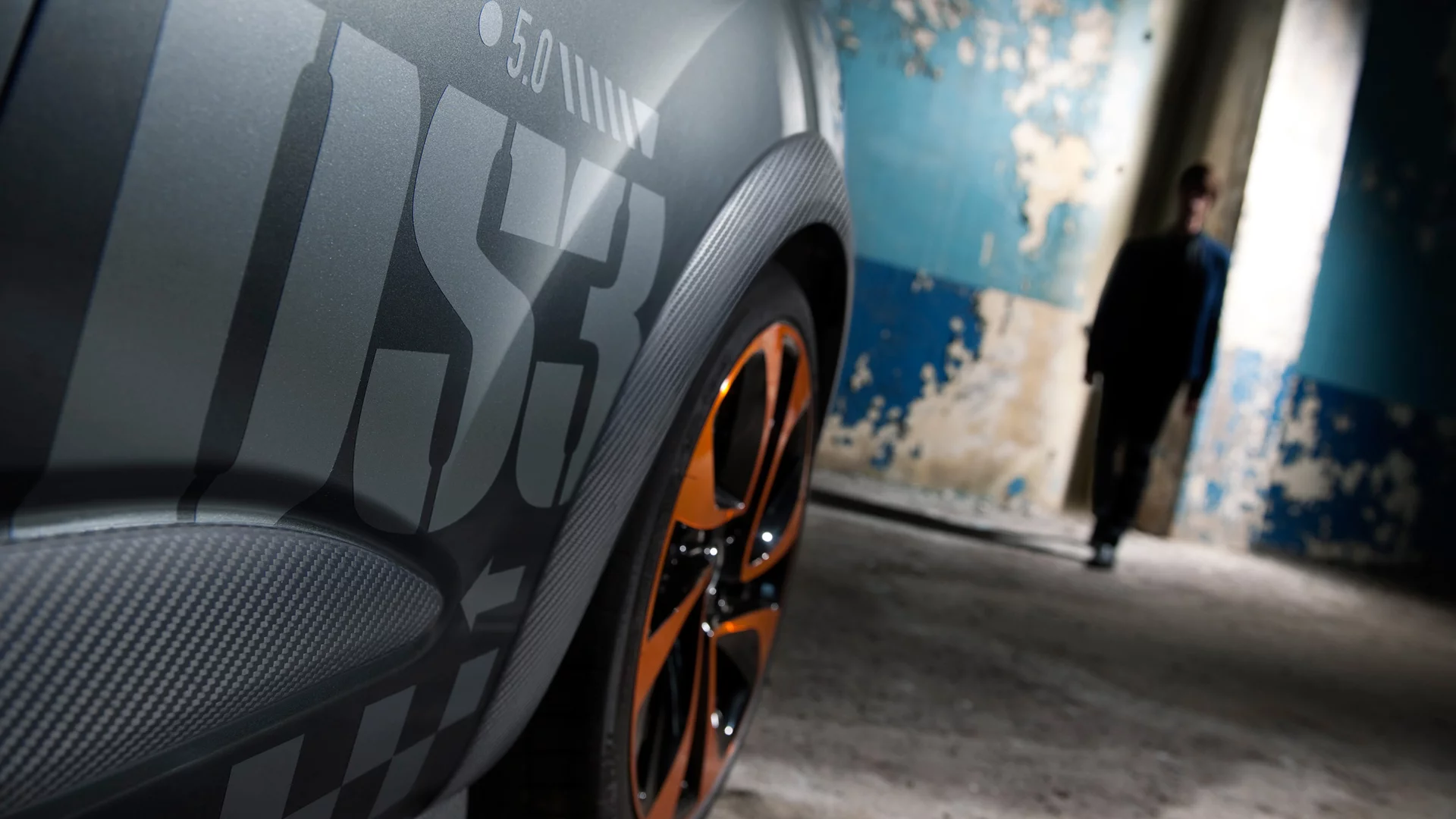 Measuring 3.94m long, DS3 Racing’s dark grey body is tastefully contrasted with a vibrant, bright orange-coloured roof, side mirrors and brake callipers. The alloy wheels and front grille surround - with integrated chevrons - are finished in orange chrome.