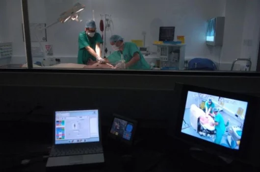 Everything happening inside the simulation suites is recorded with static and pan-and-tilt high-resolution cameras as well as discretely placed microphones. The recording is controlled in a one-way mirror shielded room overlooking the suites.