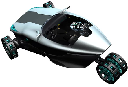 Despite the fact that very few make it off the drawing board to prototype stage, ‘go anywhere’ concept cars are an ever popular subject for budding auto designers and car lovers alike. And why not - they allow us to forget about the pesky practicalities of design and tiresome economics and imagine what could be. The latest to cross our desk - the Amphibious Hybrid concept vehicle - is a case of Bond meets the Transformers with its automatically adjusting tire design that morphs to ensure maximum grip on any given terrain including ice and water, where it becomes a kind of three wheel paddle boat.