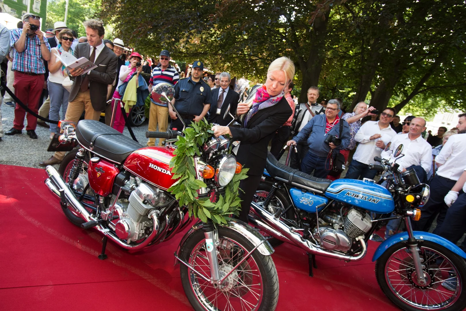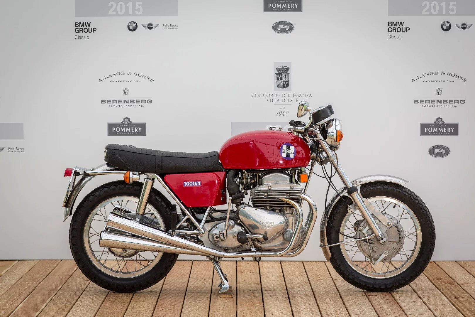 The Trofeo BMW Group for the best in show motorcycle at the Concorso d'Eleganza Villa Erba, as selected by the jury, went to a 1973 Münch-4 TTS-E, the fuel-injected variant of the bike that in its day was the largest capacity and most powerful motorcycle in series production. The bike is owned by Italian Alessandro Altinier.Friedel Münch created the aptly named Mammut (after the wooly, economy-size, elephant-like mastodon which weighed more than ten tonnes and stood up to 15 feet at the shoulder) using a four-cylinder air-cooled engine from the NSU Prinz TT automobile. Understanding the full impact of the Mammut requires looking back to a time before Honda's CB750 when the fastest road bikes around were 650cc British vertical twins. Going through a number of iterations from the 1000cc version which first appeared in the mid-sixties, the bike which won best-in-show was a 1973-model fuel-injected 1177 cc 4TTS-E, the first roadgoing production motorcycle to exceed 100 hp. Goodness gracious, how times have changed.
