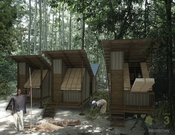 The highest community-ranked project awarded a monetary prize is "300 Possibilities" - a basic modular housing design that allows for adaptation based on the available materials and climate. A basic block house with sloping roof and modular wood formation was proposed with different features, in different street layouts, with ventilation via courtyards, windows or raised stilts to take advantage of different airflow. The key to the winning design is its adaptability, something the organizers admitted was a problem in tackling the issue of housing the global poor. Housing two billion people simply cannot be a one-size-fits-all approach, and yet this simple modular design has nevertheless taken into consideration each regions local materials and specified building materials accordingly, and adjusted street layout to make the best use of space, light and air possible.