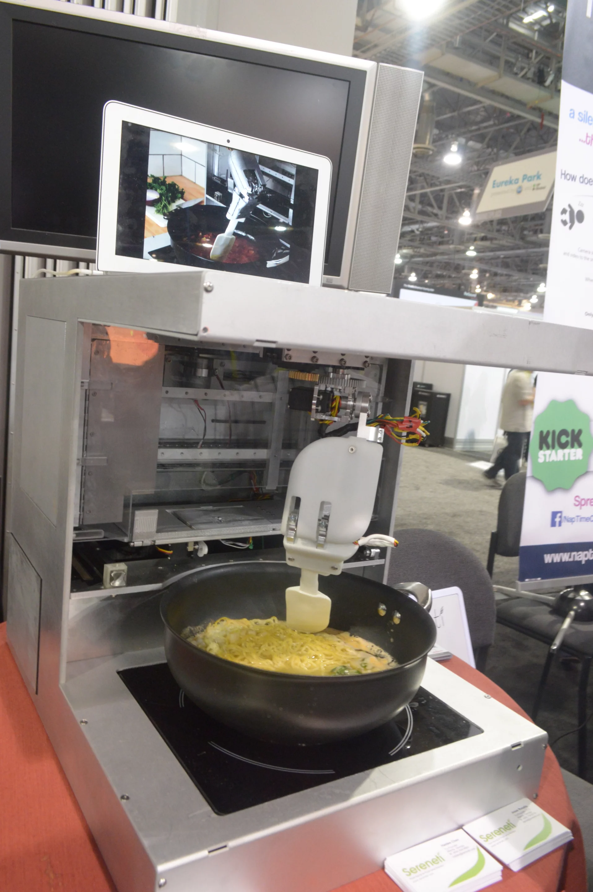 Some claim that cooking is becoming a lost art, with many in Gen Y relying on frozen pre-packaged meals or eating out rather than learning the required skills from their parents. The Cooki from Sereneti Kitchen might not do anything to reverse this trend, but it could at least enable the cooking-impaired to enjoy a meal made from fresh ingredients. On display at CES in prototype form, this ambitious culinary contraption uses a robotic arm to whip up meals from pre-portioned ingredients.