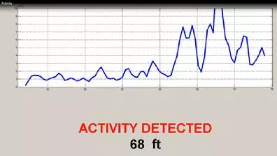 The lightweight and agile robot travels on caterpillar tracks and is remotely controlled via a laptop that can be located more than 300 feet (91 m) away. An RF scanner mounted on the robot’s lightweight arm transmits highly directional wideband signals that are able to penetrate reinforced concrete walls at an extended range. Reflections from the targets are captured by a signal detector circuit in the receiver and amplitude and delay information is then processed in an integrated signal processor to track the targets in real time.