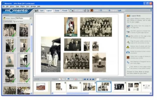 The photo and page editing tools allow anyone to size, caption, crop, scale or frame their digital photos to produce great page layouts and a unique cover design, and Momento's powerful ACE technology (Aesthetic Composition Engine) can create brilliant page designs for you in an instant.