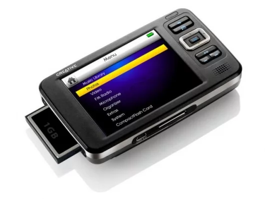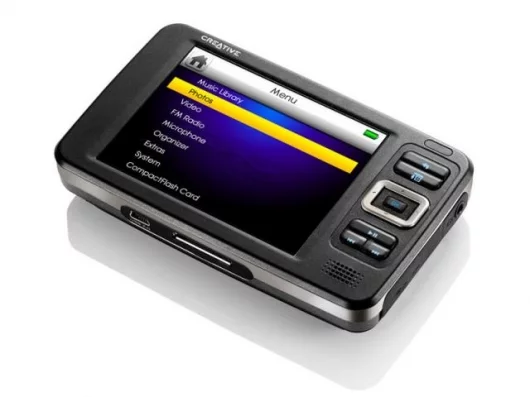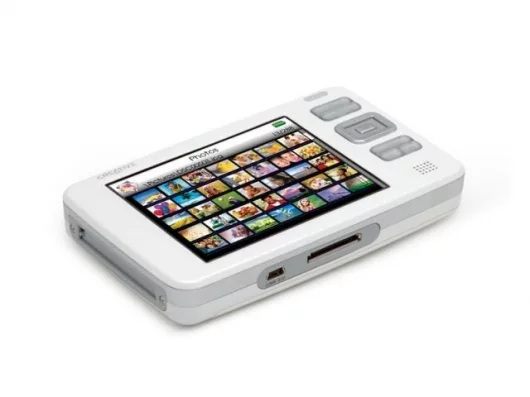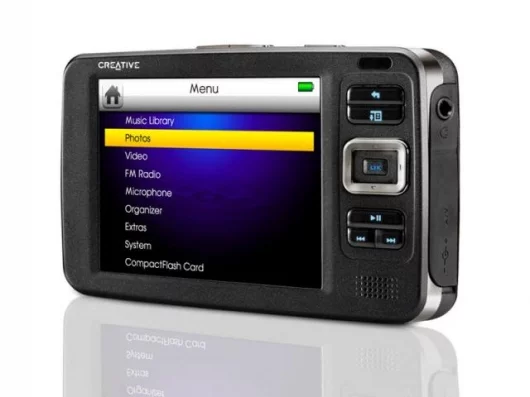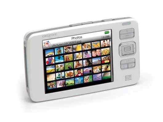 The Zen Vision can carry tens of thousands of digital photos. For sharing pictures with family and friends, a convenient composite video out connector enables stunning full-color image output on any size TV screen. Users can watch slide shows set to favorite music played through headphones, the built-in speaker on the face of the player, or by connecting speakers such as a Creative I-Trigue 2.1 system.