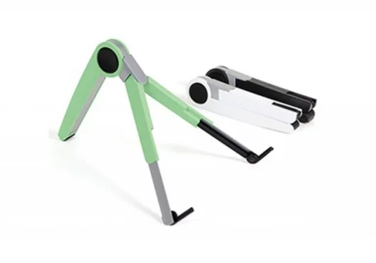 When folded down, the 6oz (170g) Stand is compact enough to slip into the side pocket of a computer bag. Unfold it and it becomes a three pronged perch for laptops (or Tablet PCs) of all sizes up to a weight of around 12 pounds (6kg) with six different incremental height adjustments. Add a travel keyboard and mouse and you have a significantly more comfortable portable office.