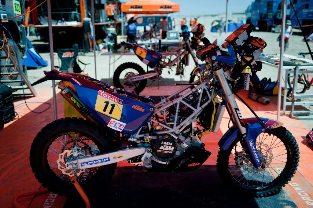 Fellow KTM factory rider Cyril Despres trailed Coma by just over 15 minutes after 9600 km of competitive riding over the most challenging terrain possible, and ten of those minutes were a penalty for passing a flag on the wrong side, so it again highlights just how equal the superstars are on the track. Despres and Coma rode on equal terms throughout the 13 stages and frequently finished only minutes apart. Indeed in the penultimate stage there was only 37 second separating the two riders at the end of the day. Between them Coma and Despres took victory in eight of the 13 stages - Coma won five stages and Despres won three.