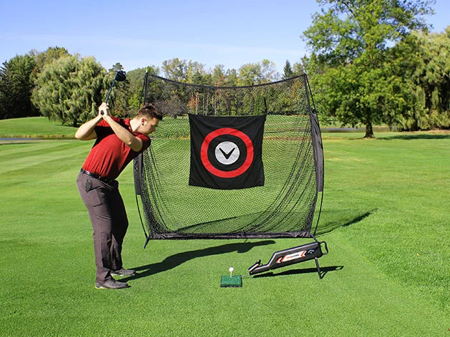 The system includes everything needed to get started on perfecting their swing. Individuals will get plenty of practice with an 8-sq.-ft. hitting net that keeps balls at bay, a target bullseye for accurate swinging, a tee resting on the turf, and an FT launch zone hitting mat. The set also comes with a pro caddie ball shagger and feeder that holds and collects up to 35 balls and distributes one ball at a time — bringing concentrated practice without continuously reloading the ball.
