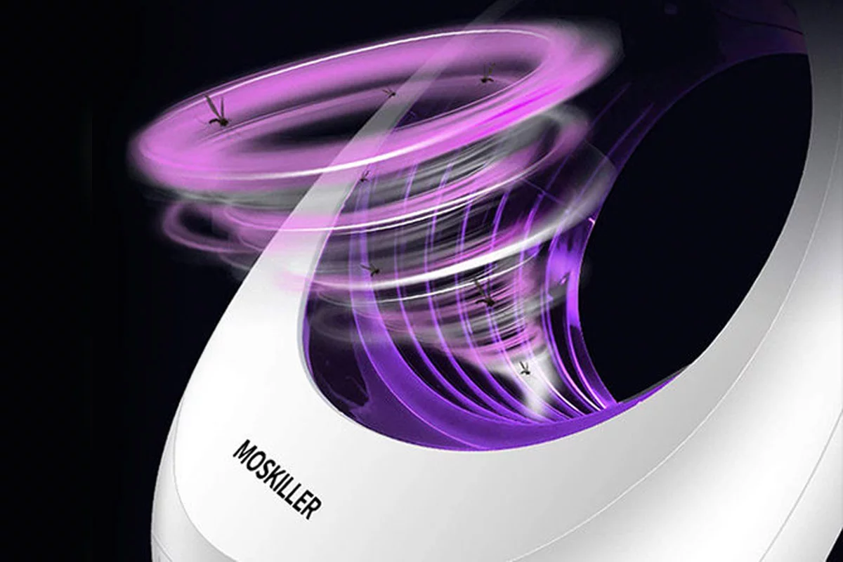 This LED lamp combines four means of technology--the LED light source, bionic temperature, air turbulence and the physical drying that mosquitoes find attractive. The five LED light waves and the bionic temperature increase the range of the light, thereby attracting the mosquitoes to their eventual demise.